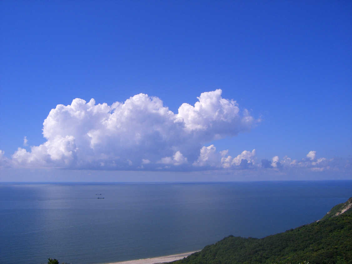 先乘205路車到珠海港后乘船去荷包島,珠海港的海關(guān)大樓后就是一條通往高欄島的行車大堤,走過大堤就是一個(gè)分叉路, 向右邊行三四百米就是荷包島碼頭(有標(biāo)志牌),向左是去飛沙灘的。