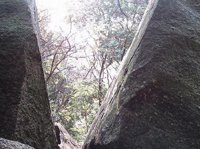高涼嶺石多且怪。有二人下棋的仙奕石,形似母豬的豬乸石,欲躍龍門的鯉魚石,引頸啼曉的金雞石。有的石如金牛戲水,雙獅對耍,白鶴飛天。還有石鼓、石船、石池、石床、石桌等等。其中特別引人注目的要數(shù)試劍石,此石長約三丈,高達(dá)丈余,形似豬腰,中間裂為兩半,裂縫處整齊如切。當(dāng)?shù)貍髡f云:“冼夫人當(dāng)年曾戍兵高涼,為振軍威,以劍劈石,故成此狀。”試劍石因此而得名。