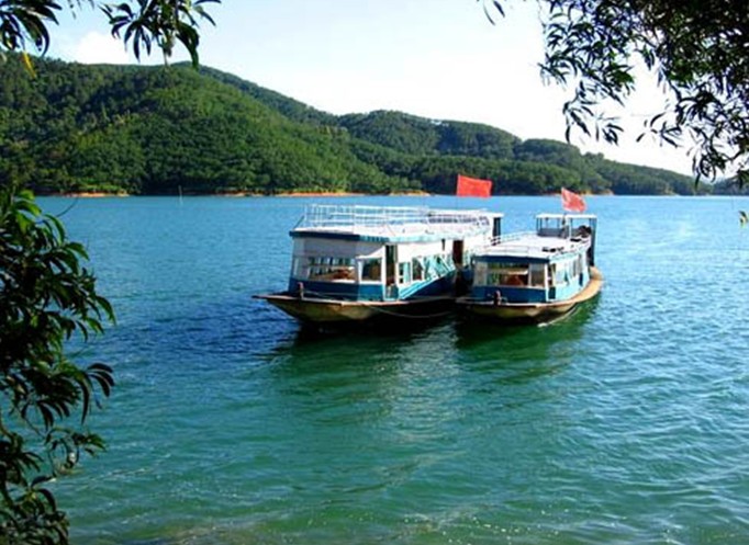 玉湖的水是難以描述的。單是集雨面積1022平方公里,水面40平方公里,蓄水11.5億立方米,其本身就蘊含著難以想象的誘惑。所以外地人每每問到湖多闊,水多深,魚多大?……他們在身臨其境之前,版權(quán)所有山東聊城聊之旅國際旅行社有限公司,轉(zhuǎn)載必究!往往把她想象成為大海的壯闊,海的高深,海魚的肥美……1959年,水庫建成蓄水,淹沒了良德、石骨、黃塘、均墟四個古老的墟鎮(zhèn)(其中良德墟曾是唐明皇太監(jiān)高力士的故鄉(xiāng)),移民5萬,水最深50多米。也許是山高水深,也許是季節(jié)變更星移物換的緣故吧,水色也跟著變。春水藍(lán)、夏水綠、秋水青、冬水黝藍(lán)。水變山也變,青也罷,綠也罷,湖水卻永遠(yuǎn)是魚的樂園。玉湖中的魚有多少?誰也說不清。80年代初期,漁場曾趕捕撈過最多的一網(wǎng)11萬斤,最重的一尾80多斤,一般的鳙鯉也有20至50斤。每當(dāng)游客凝神碧波綠浪時,只見魚戲波濤,跳躍于浪尖上。如遇酷暑落霞之時,霞光映紅了湖面,四面八方涌來了一群群姑娘,“撲”、“撲”地跳入湖中,揚起一串串歡暢的笑聲。此時山在笑,水在笑,笑顫了龍宮,魚兒也聞笑穿梭于姑娘中間,煞是精彩、醉人。