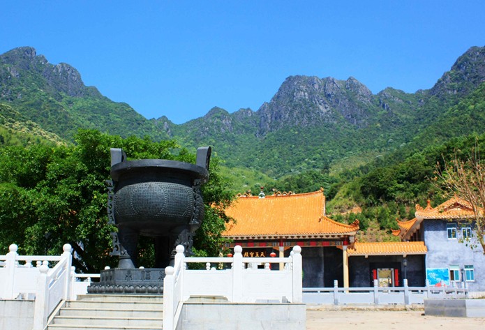 了拳在青溪坪砂村暫住期間,常徒步三河壩良洲崗山巔西望陰那山,醉心于五指蟬聯(lián),聳峙云表的山川形勝。不久,便毅然登程前往。路過三河壩梓里村時(shí),見村民求雨不得,乃卓錫成井,置石龜于井中,頓見清泉汩汩。故此地方至今天雖亢旱而泉源不竭。鄉(xiāng)人感其恩澤,建庵于斯村,名曰“靈山寺”。昔有了拳祖師塑像供座,逢旱歲,遠(yuǎn)近祈雨,必有靈驗(yàn)。