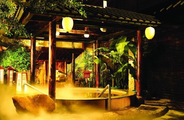 御溫泉內(nèi)按不同需要和功能分為靈芝湯、鮮人參湯、當(dāng)歸湯、薄荷湯、艾葉、三丫苦湯、蘆薈湯等池子,客人還可享用各種特色溫泉池、桑拿、蒸汽浴、健身房、香薰屋及飲品。明月松間,清泉石上,樹影婆娑,氤氳香彌……每一個(gè)走進(jìn)御溫泉的人都仿佛走入一片久違的山水田園。御溫泉設(shè)有天然溫泉華興池、花草溫泉、木溫泉、咖啡溫泉、酒溫泉、瀑布溫泉、音波噴射溫泉、石溫泉,以及成人、兒童溫泉游泳池和設(shè)備齊全豪華的健身中心等十余種不同類型的溫泉浴服務(wù)。御溫泉建有10多套獨(dú)立室內(nèi)溫泉浴池的園林式貴賓休息房。還配有大型蒸氣浴和桑拿浴室及40多間標(biāo)準(zhǔn)按摩、推拿室,供游客浴后接受保健按摩,增強(qiáng)泉浴的療效。