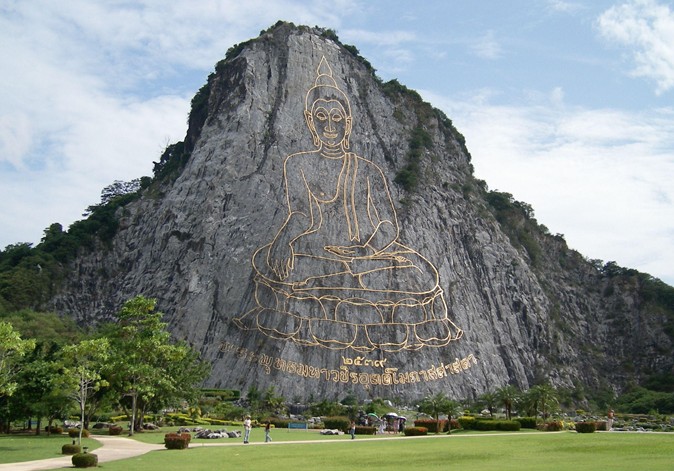 此為芭達(dá)雅最大的釋迦牟尼佛雕像,共用18噸重的24K金雕塑而成,此山中亦挖掘出許多的古佛像。七珍佛山令人大開眼界,傳說這是一個(gè)高僧為當(dāng)今九世皇找的龍脈所在,就著山形剖開一面山,削平山面,依山用4噸黃金刻了一座大佛,據(jù)說是用高科技鐳射畫出打坐佛像,用意大利進(jìn)口的金鑲嵌線條,金線耀眼,在佛的心臟處藏有釋迦牟尼的舍利。