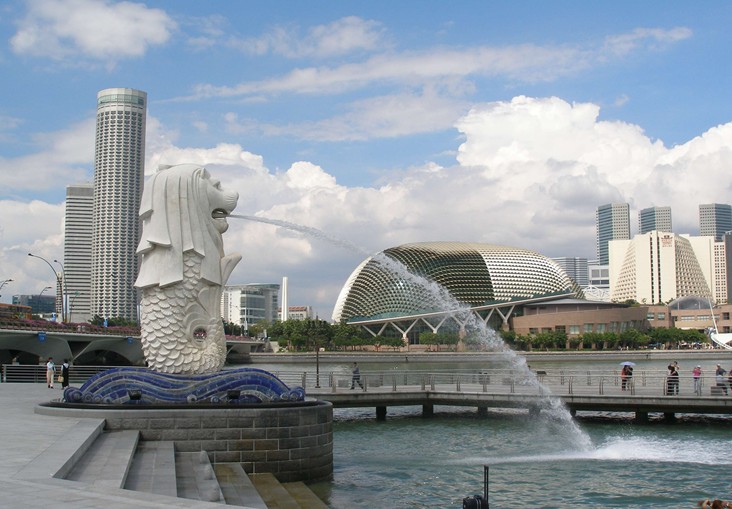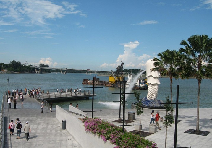 魚尾獅是一種虛構的魚身獅頭的動物。它在1964年由時任Van Kleef 水族館館長的Fraser Brunner先生所設計的。兩年后被新加坡旅游局采用作為標志,一直沿用到1997年。該塑像高8.6米,重70噸,獅子口中噴出一股清水,是由雕刻家,林浪新先生和他的兩個孩子于1972年共同雕塑的,另一座高2米的小型魚尾獅雕像也在同一時期完成。獅頭魚身坐立在水波上的魚尾獅,其設計概念是將現(xiàn)實和傳說合二為一:獅頭代表傳說中的“獅城”,至于塑像的魚尾造型,浮泳于層層海浪間,既代表新加坡從漁港變成商港的特性,同時也象征著我們當年飄洋過海,南來謀生求存,刻苦耐勞的祖祖輩輩們。1972年9月15日,當時擔任新加坡總理的李光耀為魚尾獅塑像主持開幕,大小魚尾獅最初建立在離現(xiàn)址120米的安德遜橋邊的魚尾獅公園。他在致詞時表示,希望魚尾獅能成為新加坡的象征,就如艾菲爾塔是巴黎的象征一樣。為了紀念這項盛事,制定了一塊銅匾,銅匾上刻有獻詞:“魚尾獅是新加坡迎賓好客的象徵”。一言九鼎,隨后這數(shù)十年里,魚尾獅成功打造出新加坡的國際形象。隨著國家政策大力鼓勵發(fā)展旅游業(yè),以及旅游局雄心萬丈的促銷策略,新加坡作為一個旅游勝地的知名度也打響起來,魚尾獅塑像更成為吸引外來游客拍攝“到此一游”照片的最佳鏡頭。由于具有顯著的表征性,這個原屬商用性質(zhì)的標志,因而從旅游的層次,逐漸擴大,提升至無所不在的各個領域和層面,甚至最終被圖騰化和神圣化起來。這原本是美事一樁,造型趣味而極富創(chuàng)意的魚尾獅,全身潔白、雙眼含笑毛發(fā)豐美、鱗片鮮活。白色水花日夜不停地從獅口噴灑而出,流向河水、奔向大海,為新加坡河畔一帶的景致營造了美好的氣氛。