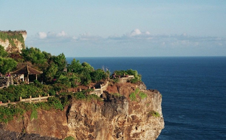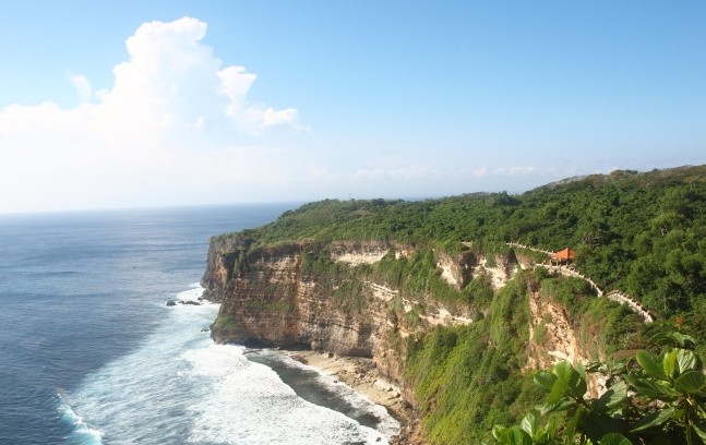 烏魯瓦圖斷崖位于巴厘島最南端。它的背后有一段凄美的愛(ài)情悲劇。傳說(shuō)當(dāng)?shù)赜袑?duì)門(mén)戶不當(dāng)?shù)那嗄昴信鄳?,女方的父親是村長(zhǎng),因此兩人的愛(ài)情的不到任何祝福,在絕望之下雙雙投海殉情。為此地平添了離奇色彩。