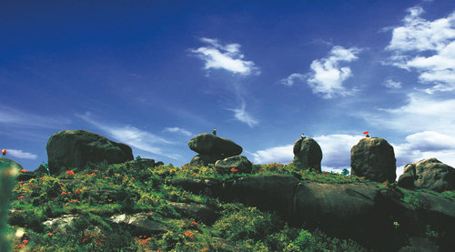 日出:在高高的山頂,激動人心的要數(shù)觀日出了,萬籟俱寂的清晨,登上撩望臺,舉目遠眺,一輪紅日噴薄而出,天地間瞬時霞光萬道,叢林盡染。介于怪石的靜態(tài)美與日出的動態(tài)美之間,又有云海的獨特美,玉蒼山似真似幻的云海隨著季節(jié)的變換顯示出獨特的魅力。冬天層云鋪天蓋地,群峰盡隱,海天一色;一到夏季,流動云霧裹著陣陣山風從林中、石縫里翻涌而來,時而遮天蔽日,時而碧光萬里。