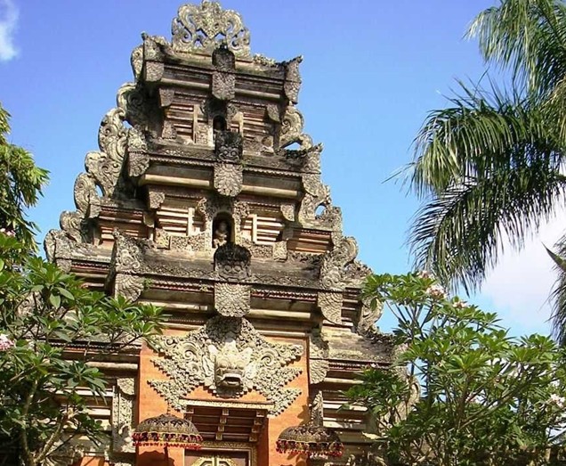 巴厘島烏布皇宮 (Puri Saren)位于巴厘島最具藝術(shù)氣息的烏布地區(qū)繁華地帶,是烏布王朝聘請著名的藝術(shù)家所規(guī)劃設(shè)計的,這棟在16世紀建筑而成的皇宮,烏布皇宮外觀雄偉的石刻技術(shù)堪稱一絕,內(nèi)部的風格精致手工細膩,處處的金箔裝飾讓整個氣氛更顯輝煌。早期烏布皇宮是提供給王朝所居住的,在1930年代首開風氣,將皇宮內(nèi)的部分住屋對外開放,目前皇宮前院整理成旅館供觀光客住宿,不過價格不斐,每晚在美金100元以上。如果有機會可以到烏布皇宮一宿,感受身為貴族王朝的奢華感受。