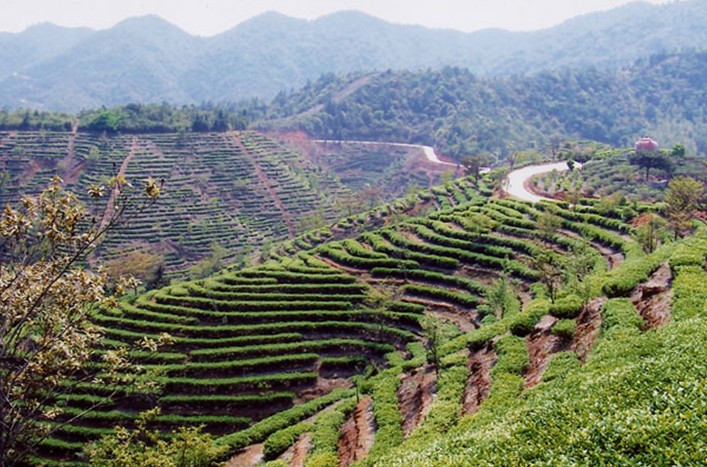 西巖茶鄉(xiāng)以她的秀美、蒼翠和茶田的鮮明層次感,讓你浮想聯(lián)翩,詩(shī)興大發(fā),心曠神怡。綠色的茶田連著青山,延綿數(shù)十公里,天上白云在藍(lán)天下顯得更加明媚多嬌。清晨,高山繞著云霧,霧在山中,人在霧中,人間仙境恐怕只有身臨西巖茶鄉(xiāng)才能真正領(lǐng)略。
