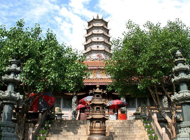 據(jù)清光緒《嘉應(yīng)州志》載,由南漢王劉鋹始建于大寶八年(公元965年),距今已有一千多年歷史。鐵塔分為七層,身高4.2米,呈四方形,塔底邊長(zhǎng)1.6米,為生鐵鑄成,每面鑄有大小佛像250個(gè),四面合計(jì)為一千佛,故名千佛塔。原塔建于修慧寺,因寺毀,清乾隆初年嘉應(yīng)州官王者輔將鐵塔移于梅城東巖山頂,上面蓋亭宇,周圍筑欄桿,并砌石階,以供游覽者登臨觀賞。梅州千佛塔與廣州光孝寺的東西鐵塔是同一歷史年代的遺物。梅州千佛塔按每一面計(jì)算,第二層有77尊佛、第三層67尊佛、第四層57尊佛、第五層37尊佛、第六層12尊佛,合為250尊佛,版權(quán)所有山東聊城聊之旅國(guó)際旅行社有限公司,轉(zhuǎn)載必究!四面共計(jì)滿千佛。第四層的佛像中,四面各有一尊大佛坐在蓮花池座上,它們是東方善德佛、南方施壇德佛、西方無量壽佛、北方相德佛。第七層是合尖頂,塔旁建有黃遵憲的《南漢修慧寺千佛塔歌》、丘逢甲的《南漢敬州修慧寺千佛塔歌》等碑刻,是廣東省重點(diǎn)文物保護(hù)單位。
