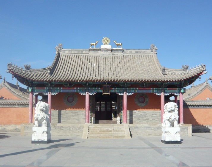 始建朝克沁殿,是內(nèi)蒙古四大廟宇之一。蒙古語名“班智達(dá)葛根廟”,漢名“崇善寺”。1786年,乾隆帝賜封巴拉吉爾隆德布為一世活佛,以“阿日旺•章龍•斑智達(dá)”為稱號(hào),意為“聰明傳教師”,并賜給滿、蒙、漢、藏四種文字書字匾額頒發(fā)了度牒。“章龍班智達(dá)葛根廟”由乾隆帝欽賜漢名為“崇善寺”,到第二世活佛時(shí)佛殿又大規(guī)模擴(kuò)充,具有一百多年的興盛時(shí)期,清光緒年間達(dá)到極盛,喇嘛最多時(shí)達(dá)1200至1500多人(1840年—1930年)。廟寺的上層喇嘛與西藏拉薩和山西五臺(tái)山等地的宗教上層保持著密切的聯(lián)系?!?/p>