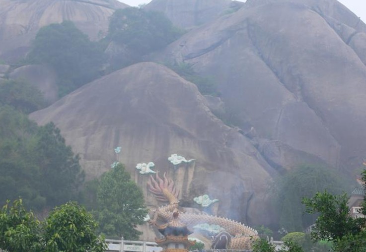 桑浦山,乃人文薈萃之地賢留下不少勝跡。山上巨石嶙峋,參差危聳,巖洞極多,幽深?yuàn)W秘,古剎依巖籍洞,比比皆是。群山之中南隴水庫綿延盤纏,西峰突出眾山,如劍插天,萬山拱衛(wèi),屹然東面獅頭峰、石龜峰成鼎立之勢(shì)。據(jù)說,全山大小巖洞和寺庵有99處。