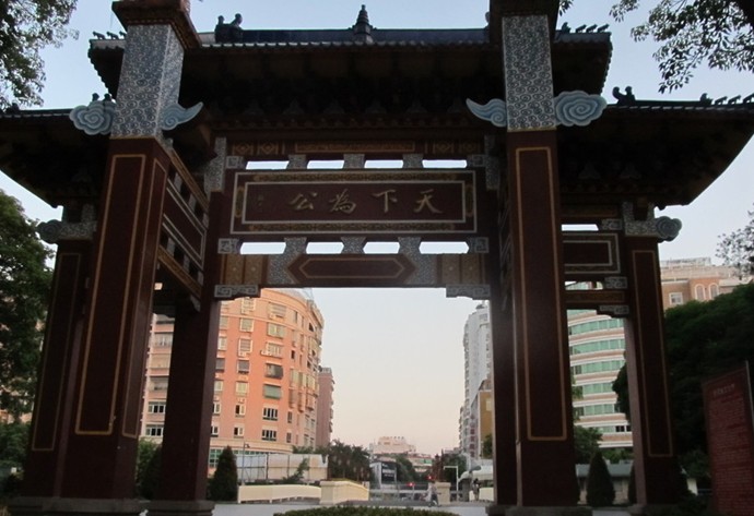 這是一座具有中國建筑傳統(tǒng)特色的牌樓,整體建筑雄偉壯觀,古色古香。牌樓建于1930年牌樓由六根紅色大方柱支撐,柱高30米,底座由約1米見方的花崗巖石砌筑,亭頂以琉璃瓦覆蓋,所以牌樓不但顯得堅(jiān)固莊重,而且金碧輝煌。“中山公園”四個(gè)字是譚延闿手書,其書法結(jié)構(gòu)嚴(yán)謹(jǐn),端莊中透出秀氣,版權(quán)所有山東聊城聊之旅國際旅行社有限公司,轉(zhuǎn)載必究!和莊嚴(yán)大方的牌樓正好相配。譚延闿是湖南茶陵人,清朝光緒年間的進(jìn)士,曾任翰林院編修,以后跟隨孫中山革命,歷任都督、部長、總司令、國民政府主席等職。他從政之余又研究書法,其書法在法歸頗有名氣。牌樓背面是孫中山手書放大的“天下為公”四個(gè)金字,行筆舒展,剛?cè)嵯酀?jì),顯得俊逸開闊。高聳的紅色牌樓和碧綠挺秀的樹木交相輝映,構(gòu)成一幅美麗的畫圖,成為公園的標(biāo)志性景點(diǎn)之一,所以很多游客喜歡在此照相留念。