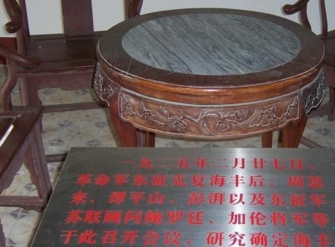 由于彭湃投身革命運(yùn)動(dòng),彭家的家財(cái)家產(chǎn)和故居,都為革命作過(guò)貢獻(xiàn)?!逗XS文物志》中記載:1925年3月,廣東國(guó)民革命軍第一次東征到達(dá)海豐后,周恩來(lái)同志和革命軍的蘇聯(lián)軍事顧問(wèn)鮑羅廷及加倫將軍曾在此住宿,一起研究工作。