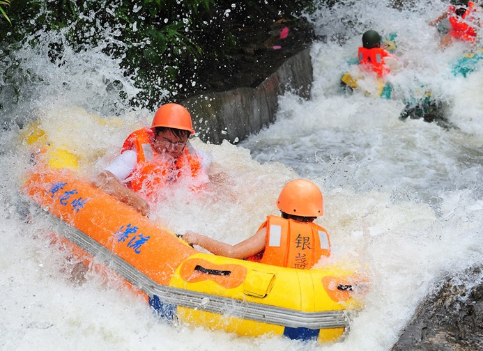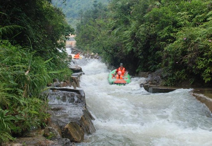清遠(yuǎn)黃龍峽漂流河道兩岸群山奇石綿延,植被蔥翠,郁郁蔥蔥,游客穿石繞壁、凌波逐浪之間亦免除陽光暴曬之苦,全程舒適寫意,充分領(lǐng)略大自然生態(tài)之壯美。清遠(yuǎn)黃龍峽漂流全程約1.5小時,每日接待量約8000人次,游客可乘景點(diǎn)中巴或旅游大巴直接到達(dá)漂流起點(diǎn),大大縮短了等待時間。它是全國唯一的雙S回旋彎賽道及多個精心賽道設(shè)計(jì)讓游人真正體驗(yàn)到挑戰(zhàn)自我的樂趣,而整個河道經(jīng)年初精心整葺,煥然一新,水質(zhì)大幅提升之余亦做足安全保障。