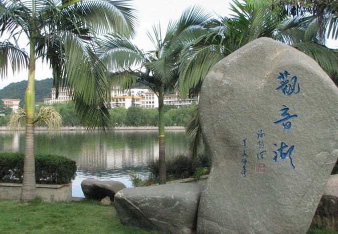觀音嶺位于碣石鎮(zhèn)北與金廂交界之處,因嶺上有觀音禪淙堂(水月宮)而得名。嶺下海灘長達(dá)8km,海中距岸lOOm處水深才1,5m,距岸200m水深2m。沙白、水清、浪小,是一個(gè)理想的天然游泳海灘。嶺前奇山眾多,有周恩來、葉挺同志當(dāng)年搶渡香港下海處的龍石,汕尾市境內(nèi)最大的摩嶺刻“鎮(zhèn)海石”,明欽差大臣成大猷、鄭岳山刻“鎮(zhèn)海石”,“揚(yáng)威止水”于鎮(zhèn)海石上。
