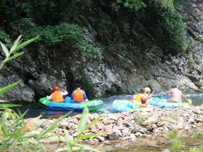 靈溪河漂流是其中極具特色的水上運動項目,靈溪河漂流全程6公里,其中休閑漂2.8公里,急流漂3.2公里,全程漂流時間2.5小時。版權所有山東聊城聊之旅國際旅行社有限公司,轉載必究!休閑漂段視野開闊、瑤族風情濃厚,兩岸古老村莊、古樹、客家大圍保存完整,河水走勢平緩、蕩漾其中,悠然自得;急流漂段峽谷林立,氣勢幽深,峭壁險灘連成一體,河水急中有緩,驚險刺激,另有架空索道(建設中)沿河飛天而過,水天相接,構成一幅優(yōu)美而壯觀的圖畫,這在全國還是絕無僅有的,故稱之為“中國飛索第一漂”。