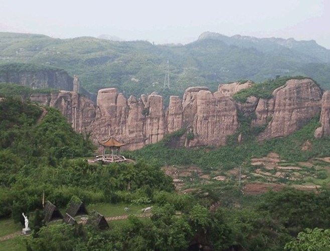 沿著西游宮轉(zhuǎn)身直上,便到了巖洞的最高處逍遙宮了。這兒的景色層次豐富,場面廣闊,群山起伏,茂林修竹,珍木奇樹,無所不有,宛如一座森林公園,這仙山絕景可使各位大飽眼福。同時,在這里回首西游宮,如同站在云端瞰大地。近處掛在云端的一塊白色石幔恰似一彎新月,這美景就叫做“瑤池觀月”了。