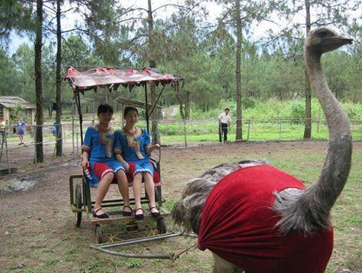 鴕鳥(niǎo)寨(養(yǎng)殖場(chǎng))位于乳源縣城東12公里,距云門(mén)大覺(jué)禪寺7公里,距韶關(guān)市區(qū)39公里。鴕鳥(niǎo)寨集鴕鳥(niǎo)的孵化、養(yǎng)殖、繁殖、屠宰、皮革、羽毛加工、飼料制造及觀光旅游,餐飲旅業(yè)于一體的三高農(nóng)業(yè)之一部分,總規(guī)劃占11000畝,目前已擁有屆同齡鴕鳥(niǎo)群約2000只。鴕鳥(niǎo)寨生態(tài)旅游區(qū)由幼鴕區(qū)、小鴕區(qū)、中鴕區(qū)、種鴕區(qū)、臺(tái)灣果園、現(xiàn)采蔬菜區(qū)、釣魚(yú)區(qū)、兒童游樂(lè)區(qū)、鴕鳥(niǎo)游樂(lè)區(qū)、燒烤區(qū)、民族文化廣場(chǎng)及原野滑草場(chǎng)與度假別墅區(qū)所組成。