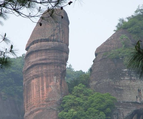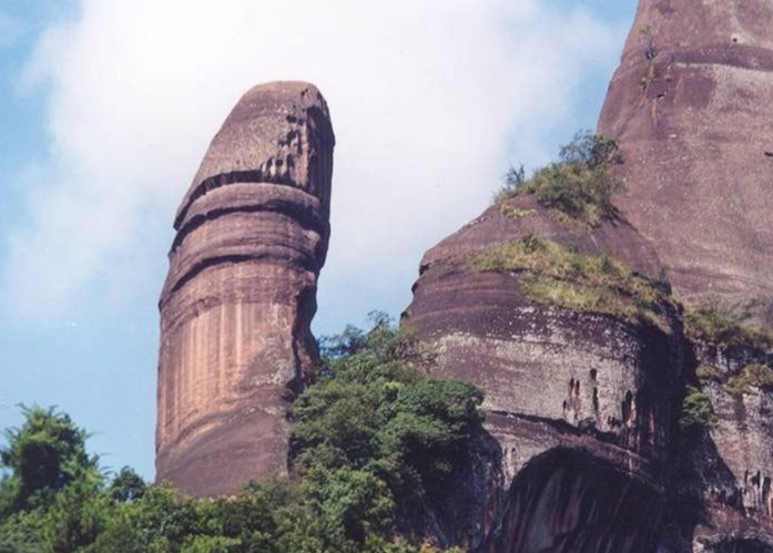 陽元石是一柱沖天巨石,其形狀不論是上部(頭部)、中間乃至下部,與勃起的男性生殖器(甚至皮色、血管)都十分形似。此石高28米,直徑7米,屬石柱類型。據(jù)專家考證,作為一個(gè)天然石柱,它從陽元山的大石墻分離出來已經(jīng)有30萬年歷史。稱為陽元石,是取其陽剛之陽,元?dú)庵?,意即陽剛之氣也?/p>
