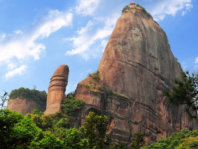 陽元山與丹霞山(長老峰)隔河相望,它因有天下奇石陽元石而得名。這里的山石不論大小,均構(gòu)成奇特的地貌造型,該區(qū)是以陽元石為中心的一塊山地,是丹霞山景區(qū)內(nèi)的一個(gè)單元游覽區(qū)。