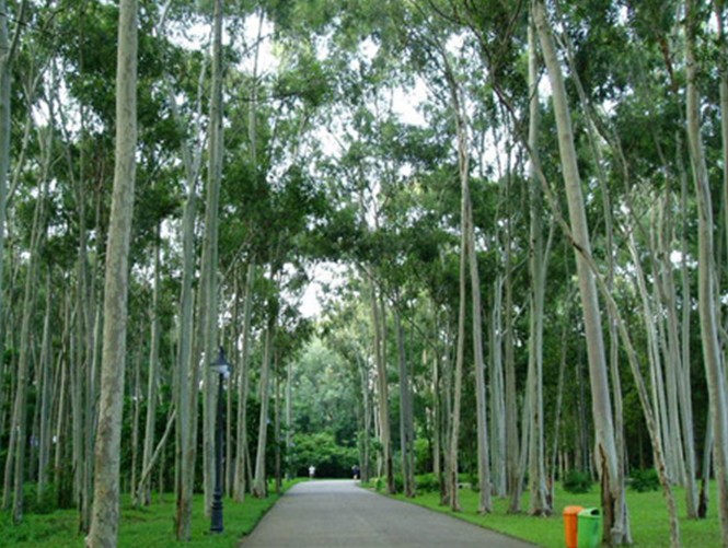 人工疏林草地植被林木種類較多,層次較簡(jiǎn)單,主要林木以南洋楹,檸檬桉,白千層,鳳凰木,陰香,海南蒲桃,小葉榕,蒲葵等20多種,林下植物主要以毛杜鵑,紅花檵木,龍船花,軟枝黃蟬等植物;公園綠地面積40多萬(wàn)平方米,種植喬灌木5萬(wàn)多株,形成層次明顯,色彩較豐富的景觀。