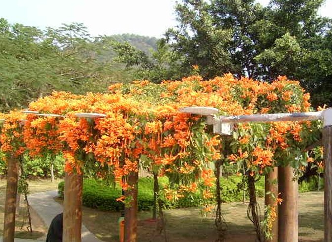 人工疏林草地植被樹木種類較多,層次較簡(jiǎn)單,林木主要有南洋楹、檸檬桉、白千層、鳳凰木、蒲葵等20多種,林下植物主要以毛杜鵑、龍船花等植物為主;園內(nèi)綠化特色樹種為美麗異木棉、宮粉紫荊等植物。緩坡地種植的毛杜鵑每到開花季節(jié)漫山一片通紅,景色非常優(yōu)美。環(huán)山路邊的二喬木蘭、美麗異木棉,到了開花季節(jié)沿路色彩斑斕,自然景觀非常壯麗。“2002-2003年,靠北環(huán)路邊以杉木、馬尾松、馬占相思為主的人工林,由于結(jié)構(gòu)單一,并已老化,已進(jìn)行了林分改造,在保留鴨腳木、山烏桕、野漆樹等具有景觀效果的野生樹種,混交配置了鳳凰木、大葉紫薇、火焰木、美麗異木棉、宮粉紫荊、紅花荷等骨干樹種,形成了層次鮮明,景觀效果高的生態(tài)風(fēng)景林。山脊線主要是以荷木、大葉相思、臺(tái)灣相思組成的防火林帶。”筆架山公園管理處負(fù)責(zé)人向記者介紹,“為給廣大市民呈現(xiàn)多姿多彩的公園景象,我們?cè)?003年沿北環(huán)繞路邊山體種植了彩色林、紫荊花樹,改變公園單一色彩,興建彩色林帶。”現(xiàn)在,公園綠化面積40多萬(wàn)平方米,種植喬灌木5萬(wàn)多株,形成層次明顯、色彩較為豐富的景觀。