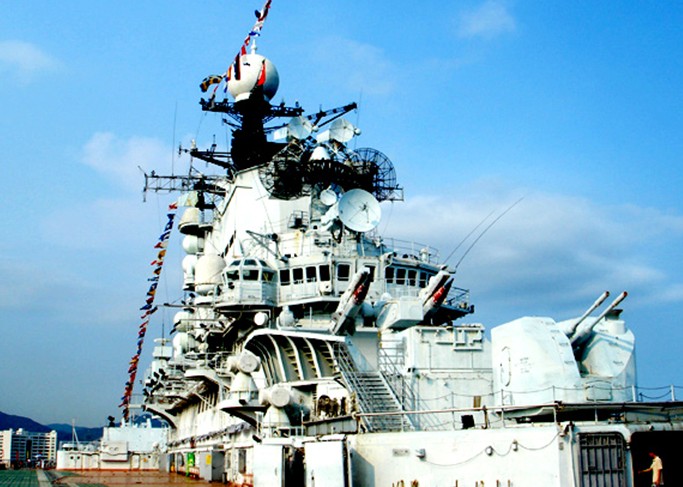 曾記,飄揚(yáng)著前蘇聯(lián)海軍軍旗的明思克號(hào),以艦長(zhǎng) 273米的龐大身軀、3.6萬(wàn)噸的排水量橫沖直撞于遠(yuǎn)東海域,直逼與美國(guó)阿拉斯加相鄰的重要水上通道----白令海峽以及日本海、中國(guó)黃海和東海海域。每當(dāng)明思克駛出蘇聯(lián)太平洋艦隊(duì)司令部海參崴軍港,除航母自身配置的強(qiáng)大戰(zhàn)斗群外,在艦隊(duì)的不遠(yuǎn)處,版權(quán)所有山東聊城聊之旅國(guó)際旅行社有限公司,轉(zhuǎn)載必究!會(huì)適時(shí)出現(xiàn)美國(guó)以偵察機(jī)和潛艇警戒群組成的護(hù)航隊(duì)伍,真可謂聲勢(shì)浩大,不可一世。冷戰(zhàn)結(jié)束后,明思克退役。1993年該艦被賣至韓國(guó),1998年6月,被深圳明思克公司收購(gòu),并開辟成“軍事題材”的旅游項(xiàng)目。