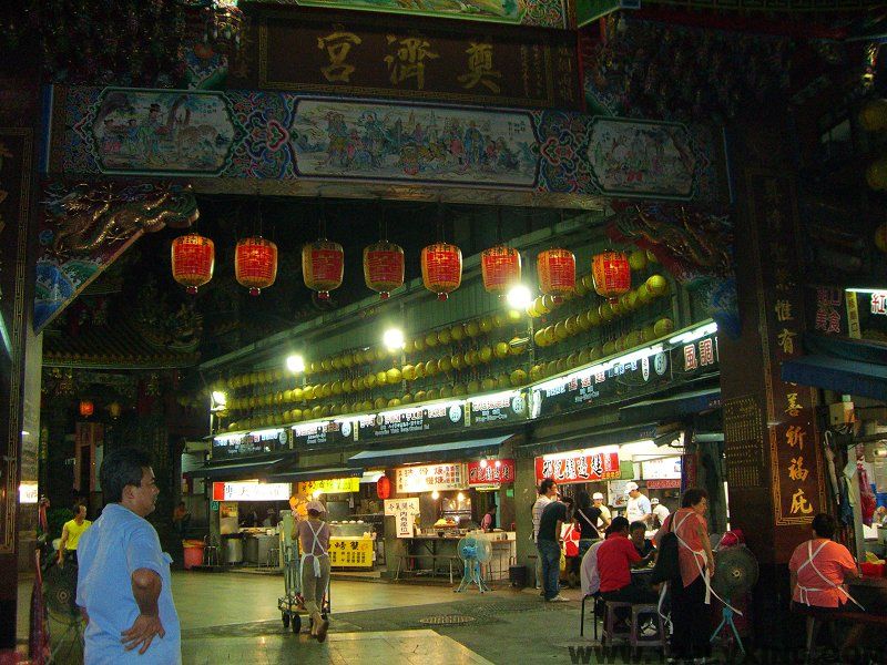 基隆廟口的小吃最早可溯源至日據(jù)時(shí)代,而今日『廟口』已成為眾所周知的觀光地點(diǎn),基隆廟口因位于俗稱『圣王廟』的『奠濟(jì)宮』前而得名;奠濟(jì)宮建于公元1873年,迄今已有100多年的歷史,是名副其實(shí)的百年古剎;奠濟(jì)宮供奉的是開漳圣王,是唐朝的陳元光將軍,開漳圣王是河南人,在公元686年奉命平定閩粵有功,因此死后封為開漳圣王;當(dāng)時(shí)由基隆地方士紳白番,有濟(jì)堂連新永、自楊傳等購買外木山十多頃田地為廟產(chǎn),以木料建廟其上,但是后來由板橋望族林本源等捐獻(xiàn)現(xiàn)在仁愛區(qū)王田里的土地再由地方士紳張金發(fā)及賴武等人捐款,并獲得地方熱烈響應(yīng),入廟后可見排列整齊的紅色大石柱,上面刻有敬神對聯(lián),正殿主神前的花鳥石柱則是日治時(shí)期建的,因?yàn)槿杖顺缟谢B之故,龍柱則是第二次世界大戰(zhàn)所造,展現(xiàn)了中國寺廟的風(fēng)格特色。