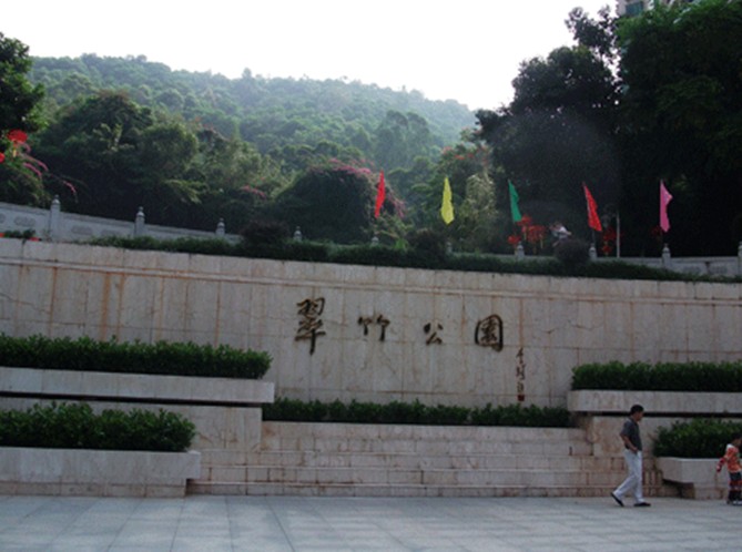 翠竹公園位于深圳市羅湖區(qū)翠竹路1078號(hào),北臨太寧路,西、南分別與翠竹路、東門路接壤,東臨水庫(kù)新村等生活區(qū)??偯娣e45.13公頃。整個(gè)公園以山地丘陵為主,多山頭,坡勢(shì)較陡。最高峰位于公園南部,海拔153.24米。1996年9月,市政府成立公園籌建辦公室,暫定名為大頭嶺公園。1999年8月市編委辦批準(zhǔn)正式定名為翠竹公園。