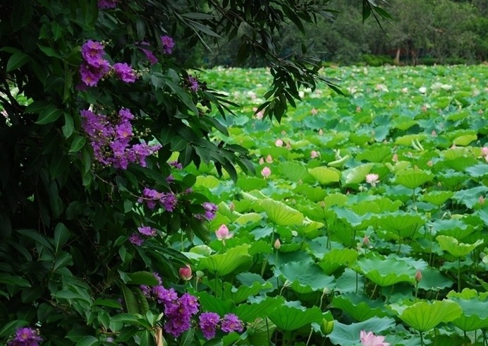 荷花是洪湖公園的主題花卉。版權(quán)所有山東聊城聊之旅國(guó)際旅行社有限公司,轉(zhuǎn)載必究!公園利用二、三級(jí)湖廣植荷花、睡蓮和其它水生花卉,面積達(dá)100多畝,品種100多個(gè),是華南地區(qū)種植荷花面積較大且品種較多的荷花景觀種植基地。自1988年起每年舉辦一屆荷花展,前來(lái)參觀荷花景觀的游客逐年增多,對(duì)弘揚(yáng)荷花文化,促進(jìn)社會(huì)主義精神文明建設(shè)起到了積極的作用。1996年以來(lái)還組織派遣專(zhuān)業(yè)技術(shù)人員和提供優(yōu)良品種,分別幫助指導(dǎo)香港和澳門(mén)園藝單位栽培荷花,增進(jìn)了深、港、澳地區(qū)之間的荷花文化交流。2001年6月,公園還建成開(kāi)放了目前我國(guó)唯一以荷花詩(shī)文為題材的詠荷碑廊。碑廊長(zhǎng)100米,書(shū)法作品85幅,國(guó)內(nèi)著名書(shū)法家趙樸初、啟功、沈鵬、王子武、佟韋等為碑廊提供了精心之作。詠荷碑廊的建成開(kāi)放,是深圳一個(gè)新的文化景觀和學(xué)習(xí)園地,也是市民和游客賞荷、詠荷、品書(shū)、觀景的好去處。