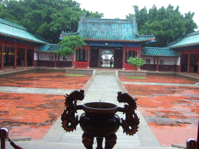 延平郡王祠,又名開山王廟或鄭成功廟,位于臺灣臺南市中西區(qū)(清代臺灣府城油行尾街),為清治時期最早的官祀鄭成功紀(jì)念祠,其前身為民間所建的開山王廟,臺灣日治時期曾改名為開山神社。但現(xiàn)今樣貌實為1963年動工改建的結(jié)果,所以該廟長久以來未被列為古跡,直至010年將延平郡王祠(含鄭成功文物館)登錄為臺南市第九座歷史建筑。