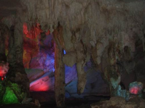位于陽春市春灣景區(qū)內(nèi),巖洞全長1400米,龍泉溪水清澈,洞如長廊形,景物鬼斧神工、玲瓏剔透,有如龍宮之物。巖洞全程分四段:首段"迎賓廊","鐘乳寶塔"、"彩旗彩帶"招展,"石鼓"咚咚,"龍王水族"栩栩如生;次段是"龍王殿",兩側(cè)玉乳玲瓏,"龍宮浮雕"、"宮壁繡錦"惟妙惟肖;第三段為"聚寶庫",庫藏"鎮(zhèn)宮寶塔"、"定海神針"、"金玉龍床";第四段為"龍舟",其間石筍石幔琳瑯滿目。