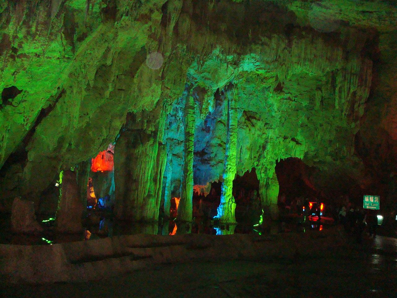 洞中棲息著7個(gè)品種約10萬(wàn)只蝙蝠,屬世界奇觀。其中大白蝙蝠和小耳蝙蝠系新發(fā)現(xiàn)的珍稀品種,國(guó)內(nèi)外罕見(jiàn)。有的蝙蝠展翅寬度可達(dá)58厘米,掠空飛翔,姿態(tài)優(yōu)美;白天在洞中石壁上倒掛棲息,一遇驚動(dòng),轉(zhuǎn)動(dòng)頭部,抖動(dòng)雙耳,發(fā)出鳴叫;出洞盤(pán)旋覓食時(shí),持續(xù)數(shù)小時(shí),場(chǎng)景壯觀;黎明前,先在洞口盤(pán)旋片刻,然后疾速進(jìn)洞,比出洞更為壯觀;加之洞中常年流水不斷,時(shí)而積潭,形成成瀑,時(shí)而循入暗河,只聞嘩嘩水聲,不見(jiàn)水源。