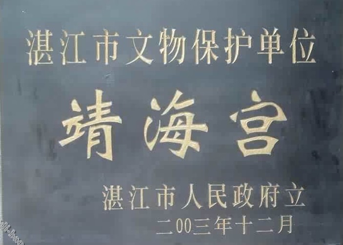 雷州靖海宮坐落于廣東湛江市雷州南渡河畔的夏嵐北村,距雷州城約10公里。此廟始建于明代,因廟臨大海,而奉祀的又是被譽(yù)為“海峽和平女神”的媽祖林默娘,故取名“靖海宮”?,F(xiàn)為雷州市文物保護(hù)單位。“靖海宮”建筑古樸典雅,宮里除神像外,還供奉著一塊黑色的大石。這塊石頭相傳以前有一位漁民海里拖網(wǎng)捉魚,一天起網(wǎng)時(shí),網(wǎng)里沒有一條魚只有一塊大石。他氣極,隨手把石頭拋回大海。但奇怪的是,他換了幾個(gè)地方下網(wǎng),都網(wǎng)起這塊大石。他懷疑是神靈作怪, 便對石頭許愿道:“如果你是神靈,就保佑我捕魚滿艙,我立你為神。”后來,他天天滿載而歸。漁民很高興,便將石頭立在沙灘上,蓋起寺廟供奉。幾百年來,這靖海宮香火不斷 靖海宮離海邊不過十余米,離海面也不過二三米高,但據(jù)當(dāng)?shù)貪O民說,不管海上有多大的風(fēng)浪,海水都打不到宮里。
