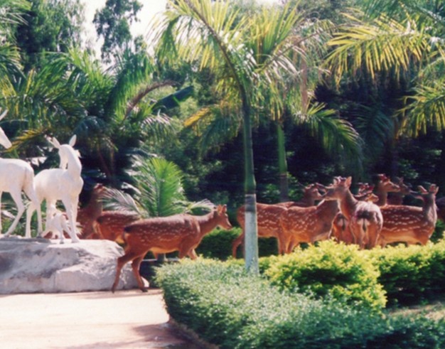 湛江金鹿園位于廣東湛江市湖光巖北側(cè)1公里處,占地近百畝,與湖光巖、南亞熱帶植物園共同構(gòu)成環(huán)湖生態(tài)旅游圈,附近空氣清新,既是湛江市理想的天然“氧吧”。也是華南地區(qū)最大的養(yǎng)鹿基地,是集生態(tài)旅游、購(gòu)物休閑、科普教育于一體的景點(diǎn)。梅花鹿,毛色美麗,性情溫馴,極具觀賞性,是吉祥、幸福的代表物。金鹿園的梅花鹿是1972年從東北引進(jìn)的,經(jīng)過(guò)20多年的努力,已經(jīng)成功解決了北鹿南養(yǎng)的一系列技術(shù)難題,原先引進(jìn)的43頭種鹿已繁育出后代鹿1800多頭。