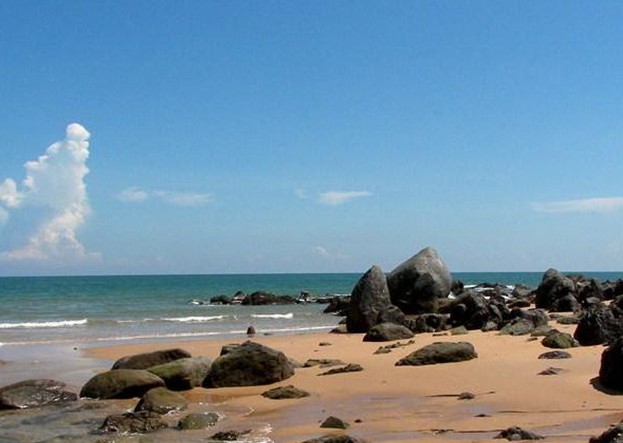 龍水嶺是航船進(jìn)出湛江的咽喉之地,是天然的“綠標(biāo)”,其地下有被遺棄的軍事工程,洞穿山腰,機(jī)關(guān)巧沒,詭不可記,現(xiàn)擬開發(fā)為多功能的娛樂場(chǎng)所——“地下龍宮”。龍水嶺海拔不高,相形于平均自然標(biāo)高約20米的東海島有“登龍水嶺而小東海”之感。站立于山頂,東海島的自然風(fēng)光盡收眼底,向西注目,田疇千里,翠綠點(diǎn)綴,云蒸霞蔚,面東遠(yuǎn)眺,瀚海無涯,一碧萬頃,漁帆點(diǎn)點(diǎn),片云天遠(yuǎn),近看,白浪層層,銀沙如練,側(cè)耳傾聽,林海颯颯,濤聲陣陣。龍海天一望無際的大海,連綿無盡的海岸線直映眼簾,腥咸的海風(fēng)夾雜著陽光的氣息,撲臉而來,漂浮在清冽的海水中,任那層層白浪撲打,隨那陣陣濤聲經(jīng)唱,你心中的什么煩惱都會(huì)飛到九霄云外。這里水清沙細(xì),坡平且長(zhǎng),平時(shí)人跡罕至,在海灘上經(jīng)??梢钥吹降氖菨O夫“拉大網(wǎng)”。若買些剛打上來的魚、蝦、螃蟹,三五知己在太陽傘下即烹即食,那才是神仙過的日子。