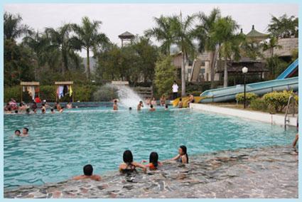 度假村里形態(tài)各異的泳池噴泉、亭臺(tái)水謝、奇水異花、園林山水,構(gòu)成了一座全方位、多功能、亦動(dòng)亦靜、如詩(shī)如畫(huà)的大型度假村。村內(nèi)興建有可以在室內(nèi)泡溫泉的溫泉賓館和度假別墅,溫泉浴分為自然溫泉區(qū)和貴賓浸身雅室。自然溫泉區(qū)又分為量稚區(qū)、情侶區(qū)、瀑布區(qū)。度假村內(nèi)還建有大小會(huì)議中心、學(xué)生旅館,辟有籃球、網(wǎng)球、羽毛球、乒乓球、燒烤等健身及娛樂(lè)場(chǎng)所。