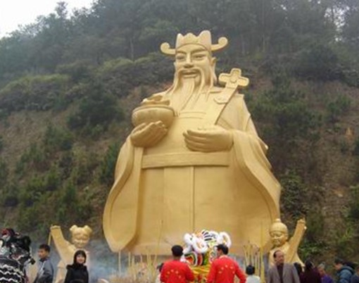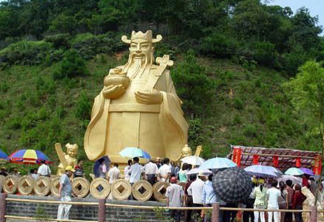 聚寶天地和君子園兩大部分:進(jìn)入由金磚作墻、兩錠巨大金元寶托起一串金燦燦的古錢幣的景區(qū)大門,便是聚寶天地,走過九宮八卦飛星圖轉(zhuǎn)運壇。隔湖可見一尊全國最大的財神塑像,手捧聚寶盆向人們惠賜財運,轉(zhuǎn)身而望,兩塊寶錠與一座青山組成的天然巨大寶錠遙遙相對應(yīng),何其相似乃爾!環(huán)湖邊是一條由一個個金錢鋪就的丁財路。
