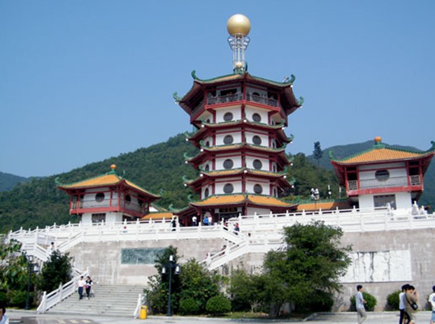 云修臺以北,即為關(guān)公財神廟。欲臨廟內(nèi),須登三層大臺階,拾級而上。每層臺階上都有一個四米進深的小平臺,平臺墻壁上有精美的漢白玉浮雕,雕刻精美,每個浮雕都含一個題材,內(nèi)容廣泛。平臺欄桿皆為漢白玉,古樸典雅。最后兩組臺階之中,仿制故宮太和殿前臺階,各置兩塊雕龍石刻,騰云駕霧,張牙舞爪,氣度非凡。登上臺階,眼前展現(xiàn)出一座巍峨聳立的八角塔樓,名為“觀星樓”。塔高六層,白墻丹柱黃瓦,翼角圓窗,層層飛檐,八望如一,雍容大方,高古雄渾。塔頂立有二龍戲珠之寶珠。門前紅柱上有一聯(lián):“樓觀端州白云入,門對西江日月生。”端州白云,西江日月全囊其中,是畫龍點睛之妙對。走進樓內(nèi),首層供奉著彌勒佛像,咧嘴大笑、袒胸露腹、盤腿而坐、手托元寶。旁懸一副對聯(lián)警世:“以忠厚相承積金皆由積德,為秀靈所聚多寶更要多賢。”四周壁架上陳列著端硯、奇石、觀音立像、臥佛等眾多藝術(shù)品,琳瑯滿目。自二樓到六樓,依次供奉著黑、白、黃、紅、綠五姓財神。這五位財神,是由印度財神演化而來。登上觀星樓頂層,步出閣外,憑欄遠望,其開闊之勢更甚于云修臺,仰觀蒼穹,白云日月似可手摘;俯瞰眼前,云修秀臺儼然腳下;平視遠方,肇慶全景盡收眼底。版權(quán)所有山東聊城聊之旅國際旅行社有限公司,轉(zhuǎn)載必究!星湖如鑒,七巖若棋,西江似帶。下樓出閣,見一大院,院北中軸線上坐落著賜財寶殿,院東乃好運閣,院西為忠義軒。院中有池,壽龜、錦鯉、仙鶴全納其中。賜財寶殿白墻黃瓦,與觀星樓色調(diào)統(tǒng)一,重檐歇山頂。大門有一聯(lián):“莫笑我竹骨泥身許個愿試試,別管你玉衾錦衣燒柱香瞧瞧。”殿內(nèi)主供正財神趙公明,神情肅穆、氣度威儀,輔奉福、壽、祿、喜神和利市天官等16尊神像,形態(tài)各異,栩栩如生。出寶殿,向東進好運閣,祀奉文財神范蠡,閣內(nèi)長聯(lián)精煉概括了范蠡生平:“應怨大樹招風,高功見疑,陶朱事業(yè)原無奈;贏得紅顏知己,青史傳美,煙水生涯聊可娛。”向西望忠義軒,見門聯(lián):“儒稱圣釋稱佛道稱天尊,漢封侯明封王清封大帝。”儒釋道三教皆祀關(guān)公。漢封“漢壽亭侯”,宋封“昭烈武安王”,明封“協(xié)天大帝”,清封“忠義神武靈佑仁勇威顯護國保民精誠綏靖翊贊宣德關(guān)圣帝君”。入殿視關(guān)公像,鳳眼雙睜,蠶眉上挑,絕倫逸群。神像旁又有一聯(lián):“數(shù)定三分扶炎漢,伐魏討吳,辛苦備嘗,未了平生事業(yè);志在一統(tǒng)佐熙朝,伏魔蕩寇,神威遠震,只完當日精忠。”是關(guān)公一生經(jīng)歷的概述。