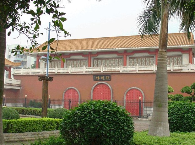 觀龍樓位于愛亨村東南面的牛頭山頂。民國24年(1935年)孫科任中山紀(jì)念中學(xué)校董會主席時,與廣東省農(nóng)業(yè)廳商定建立孫中山故居農(nóng)業(yè)所而興建的農(nóng)業(yè)所辦公室。1984年翠亨賓館興建時,將牛頭山及這座樓房接管,辟為游覽點(diǎn)。這幢樓紅墻綠瓦,門前兩條石柱繞著兩條龍,栩栩如生。這里憑高遠(yuǎn)望,可清楚望見唐家半島和淇澳島對峙的金星門(金星港),左、右兩個島成長條狀,形似臥龍,正中的金星島,嬌小玲現(xiàn),宛若一顆小珍珠。每當(dāng)晨曦破曉時望過去,恰似一幅“二龍爭珠”奇景。