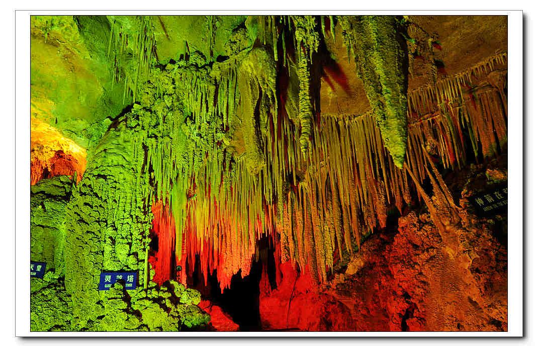 洞內(nèi)石花面積占到了所有化學(xué)沉積類(lèi)型的60%以上,被中科院地質(zhì)研究所陳詩(shī)才教授稱(chēng)之為“中國(guó)最大的石花洞穴”。各種石花以石珊瑚為基座,有針尖狀、球粒狀、葡萄狀、樹(shù)叢狀、蘑菇狀、菌塊狀、晶塊狀等,千姿百態(tài)、應(yīng)有盡有。其中大部分仍在生長(zhǎng)中,質(zhì)地純凈、組合精巧、高貴細(xì)膩,在五顏六色的彩燈照耀下,仿佛一座正值盛期的天宮花園,美輪美奐。