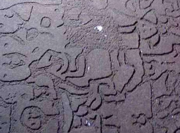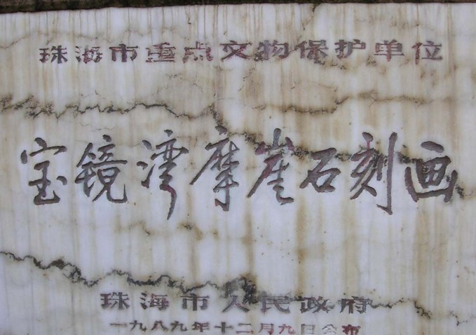 寶鏡灣摩崖石刻畫(huà),位于廣東珠海市高欄島寶鏡灣,于1989年10月被發(fā)現(xiàn),共4處6幅,散布于海灣所在的山腰、山麓200米范圍內(nèi),其中最大的一幅長(zhǎng)5米、高3米。巖畫(huà)陰刻于大塊平整的石面上,圖案密集而復(fù)雜,形狀有船、波浪、龍蛇、舞蹈人等,經(jīng)專(zhuān)家考證,是距今二三千年前青銅時(shí)代的產(chǎn)物,是南越先民生活的寫(xiě)照。