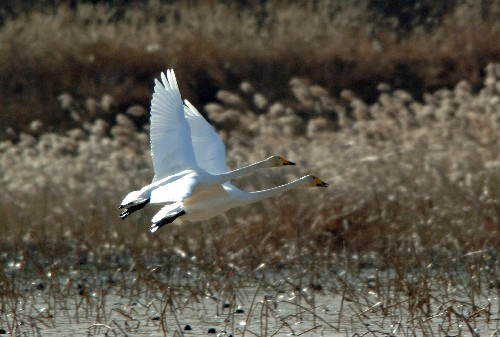 萬里黃河塑造了神奇的黃河三角洲,三角洲上有一個煙波浩渺的人工湖。每到冬天,湖面上一群群潔白的天鵝,或安詳優(yōu)雅地結伴嬉戲,或溫情脈脈地交頸摩挲,或悠閑自得地以嘴梳理羽毛,或頸扎水中,翩翩跳起"水上芭蕾"。由此,這個人工湖得名"天鵝湖"。