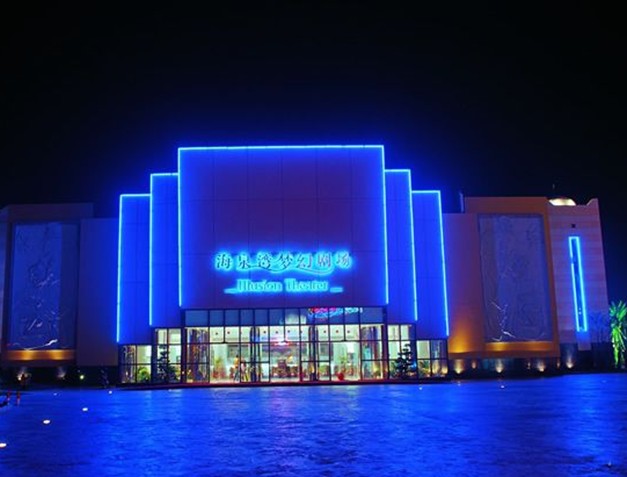 夢幻劇場坐落在海泉灣度假區(qū)大型主題活動和游客美食休閑娛樂的中心——漁人碼頭,是海泉灣投資1億多元人民幣精心打造的國內(nèi)首屈一指的現(xiàn)代化、多功能室內(nèi)劇場,能滿足大型歌舞晚會和慶典活動現(xiàn)場直播需求??偨ㄖ娣e8033平方米,劇場內(nèi)凈空高14米,舞臺臺口高9米、寬16.6米、深17.5米,舞臺總面積787.5平方米,能容納1250多位觀眾,座椅分為貴賓席、嘉賓席和普通席,三分之一的座椅具有360度旋轉(zhuǎn)等特殊功能。