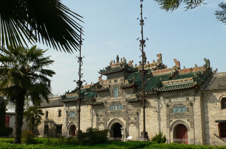 花戲樓有 “三絕”:正門前兩根旗桿,每根重6噸,高16余米,直插云霄,是為花戲樓一絕。旗桿分五節(jié),每節(jié)分鑄八卦蟠龍,頂端鑄丹鳳一只,造型生動,旗桿上還有三層方斗風(fēng)鈴24只,迎風(fēng)叮當(dāng)作響,清脆悅耳。 花戲樓的木雕是第二絕,共雕有三國戲文18出,人物數(shù)百個,神態(tài)各異,龍爭虎斗,呼之欲出。 花戲樓的第三絕在山門?;☉驑堑纳介T是一座仿木結(jié)構(gòu)的三層牌坊式建筑,上面鑲嵌著聞名天下的立體水磨磚雕,玲瓏剔透,琳瑯滿目?;☉驑堑拇u雕,屬徽派微雕藝術(shù),在不足5厘米厚的水磨青磚面上,共雕人物115人,禽鳥33只,走獸67只,樓臺殿閣多處,花草樹木無數(shù),內(nèi)容涉及到中國的宗教、歷史、政治、軍事、風(fēng)俗民情等諸多方面。版權(quán)所有山東聊城聊之旅國際旅行社有限公司,轉(zhuǎn)載必究!1988年1月國務(wù)院公布位全國重點(diǎn)文物保護(hù)單位。