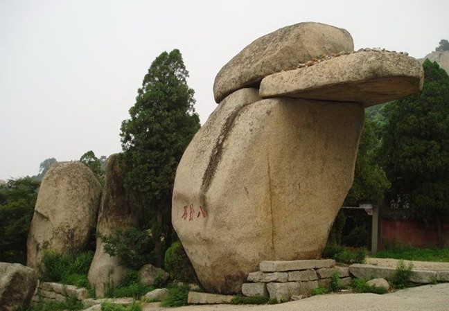 九峰臺 九峰臺是一片一畝見方的大石臺,人站在這個大石臺上往北望,可以看到山頂上九峰并列的奇姿。聊城旅游網(wǎng)版權(quán)所有聊城聊之旅國際旅行社有限公司,轉(zhuǎn)載必究!因為只有站在這片石臺上,才能看到這一景觀,所以叫九峰臺。那并肩而立的九峰,從東往西依次是冠子峰、車輞峰、斷虹崖、小神崖、大神崖、王母峰、丹丸峰、舍身崖和五華峰。九峰之中,丹丸峰最為神奇,遠(yuǎn)遠(yuǎn)望去,在峰頂?shù)氖^上,有一顆圓圓的石蛋,如丹似丸,仔細(xì)再看,那石蛋的下面還是懸空的。其實這顆看似小小的丹丸石,卻高18米粗20米。它凌空突兀,岌岌可危,懸系半天,朵朵白云縈繞其間,猛一看一陣大風(fēng)就會把它刮掉,其實它卻千萬年來巍然不動。