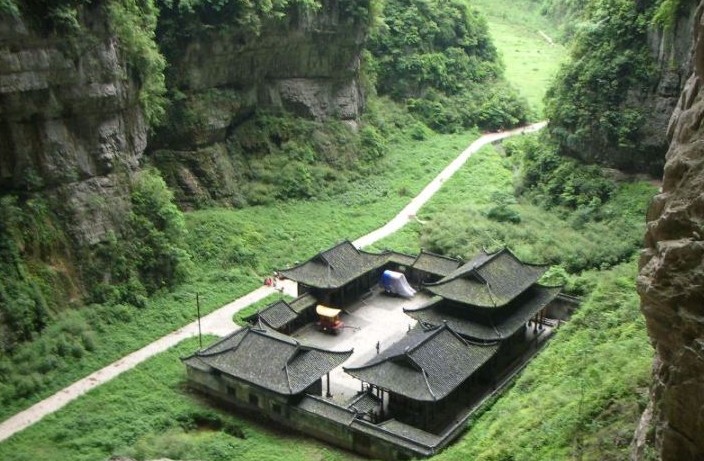 天坑三橋位于重慶市的武隆縣城東南20公里處,是重慶5A景點,武隆至仙女山高速水泥標(biāo)美路旁,距南國草原仙女山約15公里,距天下第一洞芙蓉洞僅30公里,是全國罕見的地質(zhì)奇觀生態(tài)型旅游區(qū)。景區(qū)內(nèi)游覽路線從崖壁到谷底共5公里,以天龍橋、青龍橋、黑龍橋天生三座規(guī)模龐大,氣熱磅礴的石拱橋稱奇于世,三橋平均高200米以上,橋面寬約100米,在距離僅1.2公里的范圍內(nèi)就有如此龐大的三座天生橋?qū)崒賴鴥?nèi)罕見。