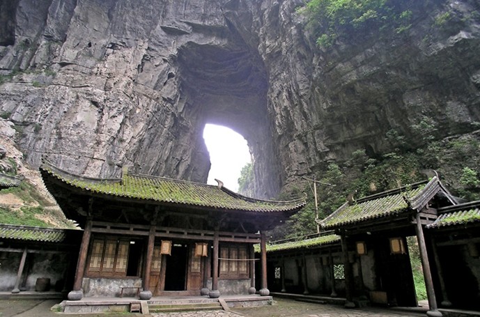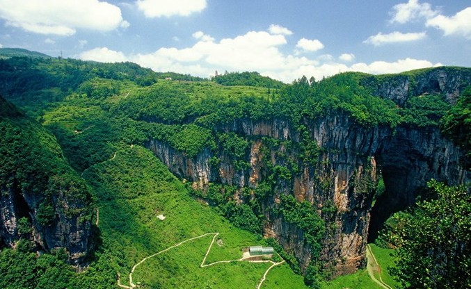 天龍橋即天坑一橋, 橋高200米,跨度300米,因其位居第一,頂天立地之勢而得名。一橋橋中有洞,洞中生洞,洞如迷宮,即壯觀又神奇。青龍橋即天坑二橋,是垂直高差最大一座天生橋。橋高350米,寬150米,跨度400米,夕陽西下,霞光萬道,忽明忽暗,似一條真龍直上青天,故名青龍橋。黑龍橋即天坑三橋,橋孔深黑暗,橋洞頂部巖石如一條黑龍藏身于此,令人膽戰(zhàn)心驚。黑龍橋景色以其流態(tài)各異的“三迭泉”、“一線泉”、“珍珠泉”、“霧泉”四眼寶泉而獨具特色。
