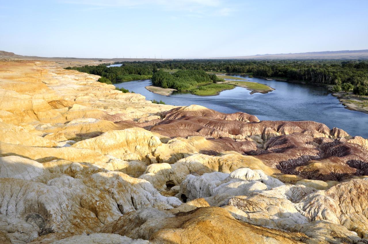 五彩灘位于布爾津縣城以北約24公里處,是前往哈巴河縣與喀納斯的必經(jīng)之路。它毗鄰碧波蕩漾的額爾齊斯河,與對岸蔥郁青翠的河谷風(fēng)光遙相輝映,可謂“一河隔兩岸,自有兩重天”。激猛的河流沖擊以及狂風(fēng)侵蝕,形成了北岸的懸崖式雅丹地貌,河岸巖層抗風(fēng)化能力強弱不一,輪廓便會參差不齊,而巖石含有礦物質(zhì)的不同,又幻化出種種異彩,因此得名“五彩灘”。 版權(quán)所有聊城聊之旅國際旅行社有限公司,轉(zhuǎn)載必究!而南岸卻是綠樹葳蕤,連綿成林,遠處逶迤的山巒與戈壁風(fēng)光盡收眼底。