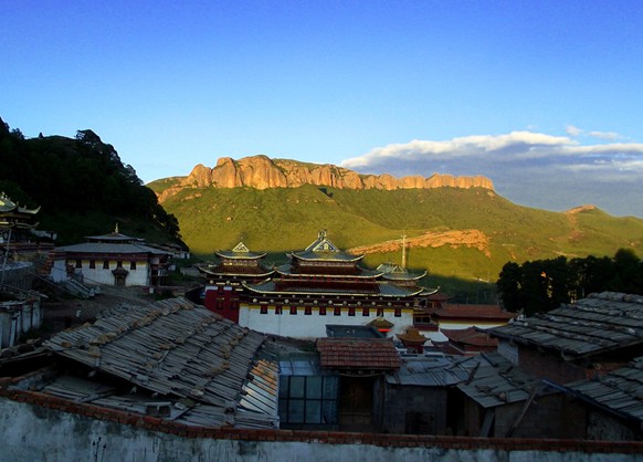 位于甘肅碌曲縣城南90公里處的郎木寺鄉(xiāng),西傾山支脈郭爾莽梁北麓的白龍江畔,地處甘、青、川三省邊界。郎木寺為藏傳佛教寺院。“郎木”為藏語“仙女”之意,因其山洞中有石巖酷似亭亭玉女,民間謂為仙女所化,故名。寺后林蔭深處有一虎穴,藏語稱“德合倉”,故該寺之名可譯為“虎穴中的仙女”。郎木寺與四川境內(nèi)的格爾底寺隔白龍江相望,早年曾盛極一時。1969年被毀,現(xiàn)得以逐年恢復(fù)。寺前有一山色,形似僧帽,寺東紅色砂礫巖壁高峙,寺西石峰高峻挺拔,版權(quán)所有山東聊城聊之旅國際旅行社有限公司,轉(zhuǎn)載必究!嶙峋嵯峨。山下大片松林蔥蘢茂密。