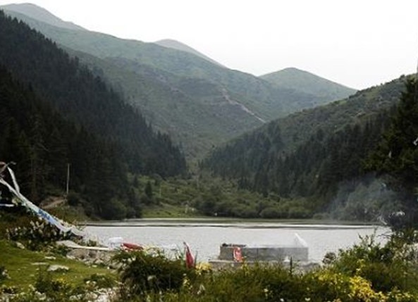 位于王夏公路約10公里處,距縣城17公里,是一潭構(gòu)造成因的斷崖地形之湖盆。湖面海拔三千米左右,呈狹長形,湖濱周圍怪石嶙峋,虬松四出。湖南北長約350米,東西寬約百米,面積約有五十余畝。湖濱地形開闊,外圍前塬是平壩草甸,三面環(huán)山,山上森林密布,林中百鳥群集,湖中魚類繁生,湖畔野草叢生,百花盛開,湖光山色,令人陶醉。人們形容達宗湖象一顆鑲嵌在密林幽谷里的明珠,在高山峽谷之巔放射著耀眼的光芒!